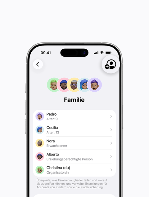 Wenn deine Kinder deinen Apple Account nutzen, können sie auf deine persönlichen Inhalte, einschließlich Nachrichten und Fotos, zugreifen. Außerdem kannst du dann nicht alle verfügbaren Features der Familie nutzen.
