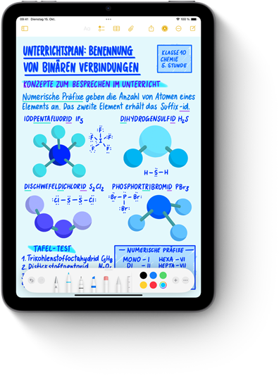iPadOS macht das iPad mini noch viel­seitiger. Pass deinen Home­screen an, lass deine Hand­schrift von Smart Script ver­bessern und nimm den Apple Pencil zur Hand, um im Feature „Mathematische Notizen“ Glei­chungen zu bewerten oder Dia­gramme zu zeichnen.