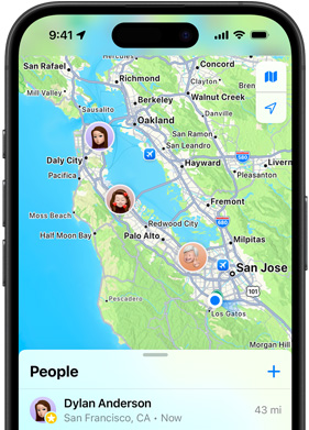Find nemt venner og familiemedlemmer, så I kan være koordineret og sørge for, at børnene er et sikkert sted. Med fanen Personer kan du invitere venner til at dele en placering eller automatisk modtage meddelelser baseret på placering. F.eks. når dit barn tager fra skole. Forældre kan tilmed administrere, hvordan deres børn deler placeringer.