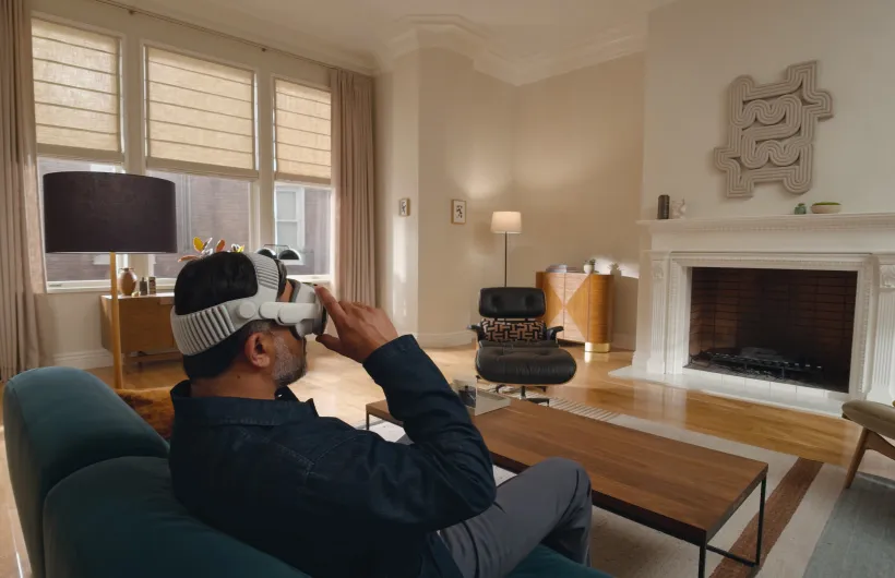 In visionOS, apps fill the space around you, beyond the boundaries of a display. They move anywhere, scale to the perfect size, react to the lighting in your room, and even cast shadows.