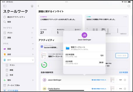 スクールワークとクラスルームで、 生徒 一人