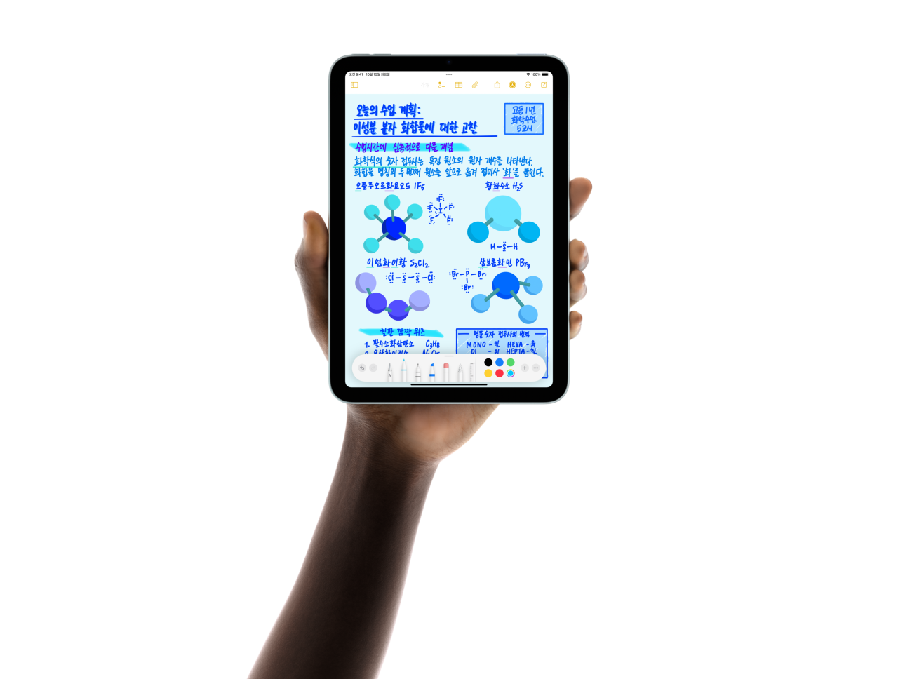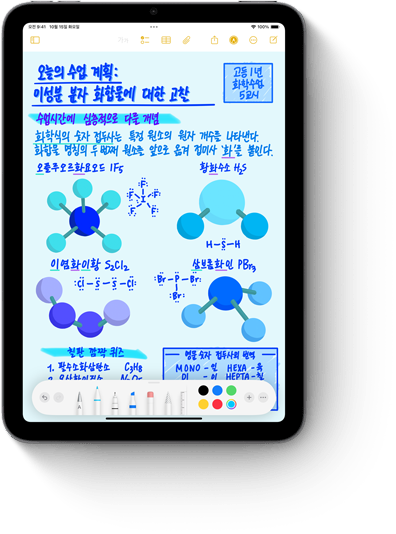 Apple Pencil은 그림을 그리고, 손글씨를 쓰고, 필기를 하는 행위가 어떤 느낌으로 이루어져야 하는지에 대한 기준을 제시합니다. 직관적이고, 정밀하면서도 사뭇 신기롭죠.2 픽셀 단위의 정밀함과 극히 짧은 지연 시간, 기울기 감지 기능, 팜리젝션 기능까지 갖췄답니다. Apple Pencil Pro는 여기에 더욱더 많은 기능을 더해 전에 없던 방식으로 당신의 아이디어에 생명을 불어넣을 수 있게 해줍니다.