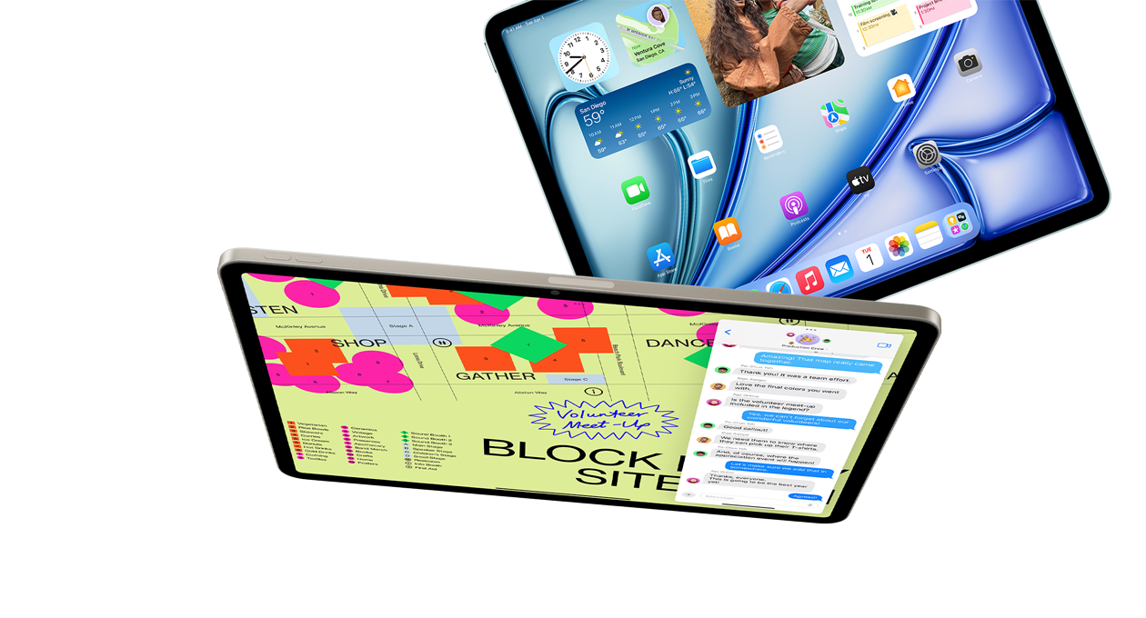 L’iPad Air est pensé pour Apple Intel­ligence, le système d’intelligence personnelle qui vous aide à écrire, à vous exprimer et à en faire plus sans effort. Grâce à des technolo­gies révolution­naires de protection de la vie privée, vous avez la garantie que personne ne peut accéder à vos données, pas même Apple.