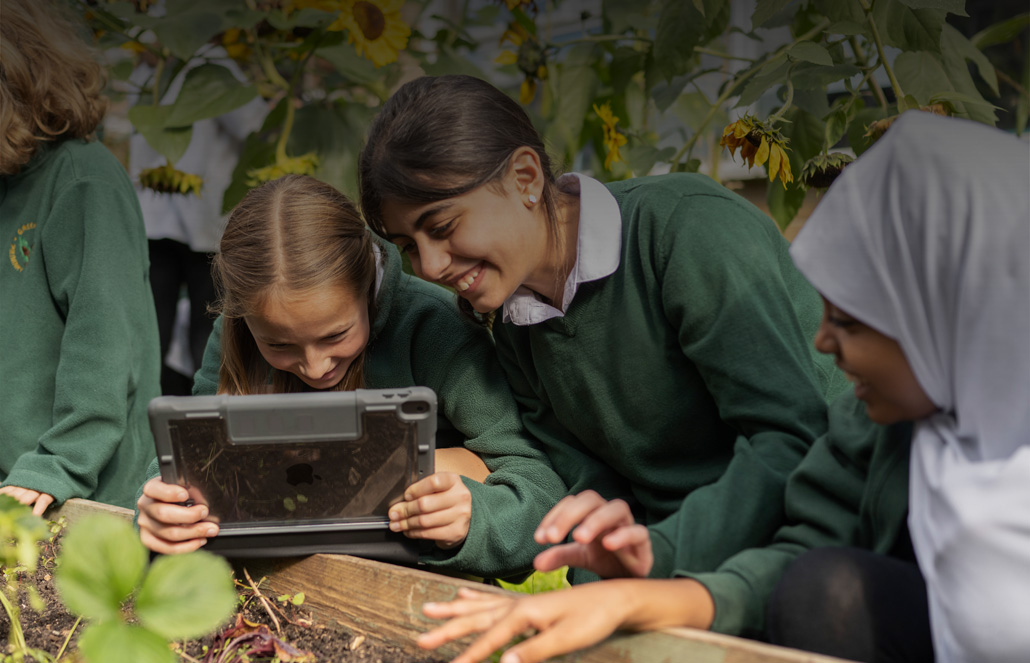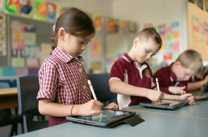 Obecnie uczniowie z zapałem projektują tkaniny w apce Tayasui Sketches School. Śledzą fascynujący cykl życia roślin w szkolnym ogrodzie za pomocą aplikacji Aparat i Clips. A emocje odkrywają dzięki tworzeniu własnej muzyki w GarageBand.
