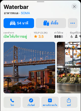 เพียงแค่เลือกปลายทาง แล้วบัตรสถานที่แบบอินเทอร์แอ็คทีฟก็จะแสดงทุกสิ่งที่คุณ