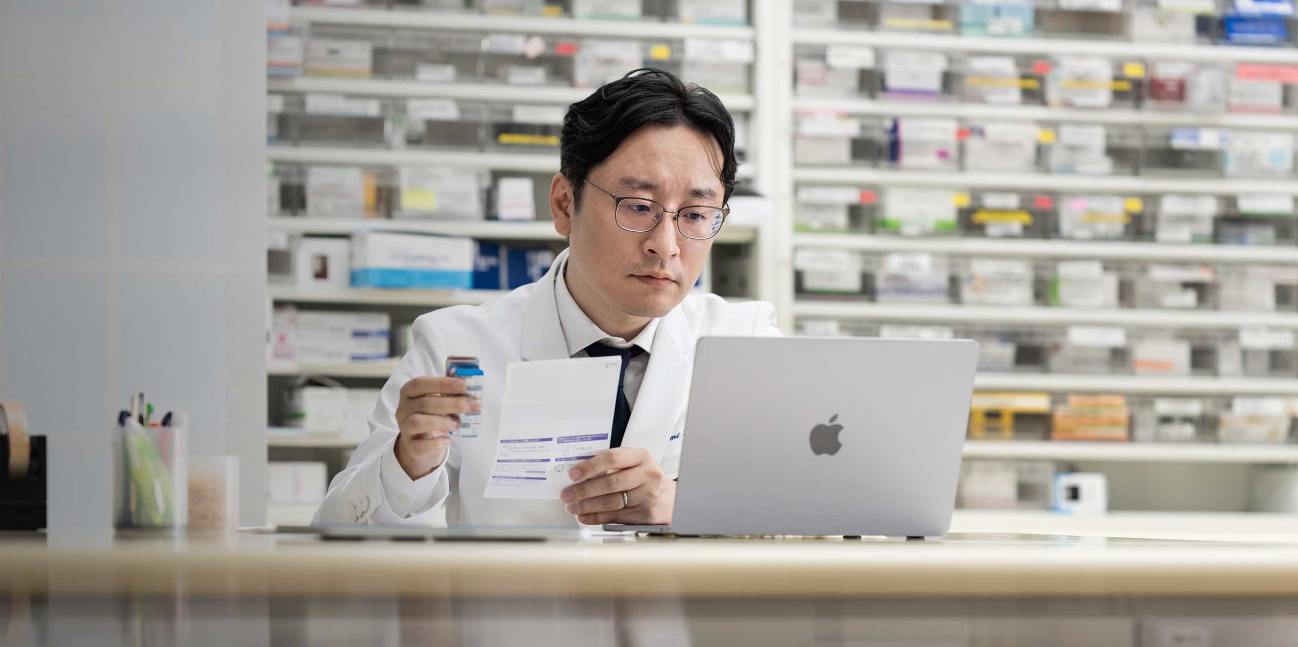 Nagomi Pharmacy’nin toplumun kalıcı bir yapı taşı olabilmesi için eczacılarının müşterileriyle bağlantı kurmaya zaman ayırabilmeleri gerekiyordu. Bunun için de operasyonları kolaylaştırmak ve idari işlere harcanan zamanı azaltmak önemliydi. Watanabe, hedefine ulaşmak için Apple teknolojisini kullanarak çalışanları için dijitalleştirilmiş bir envanter ve sipariş yönetim sistemi oluşturdu.