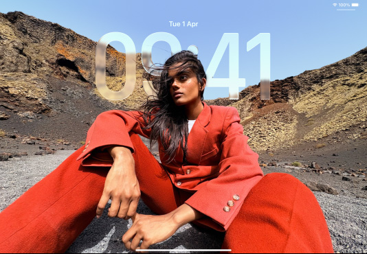Explore iPad iPad and iPad Air, side by side, iPad Air in front overlapping iPad, portrait orientation, Lock Screen shows time in translucent Liquid Glass
