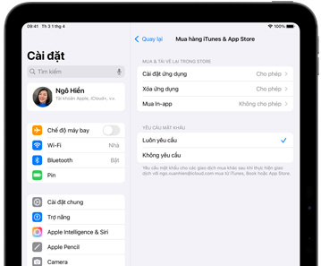 Bạn có thể ngăn trẻ cài đặt các ứng dụng mới, như mạng xã hội hoặc chia sẻ ảnh hoặc thậm chí tắt trình duyệt web Safari. Bật Hỏi Để Mua và bạn có thể phê duyệt hoặc từ chối các giao dịch mua và tải trong ứng dụng của trẻ ngay từ thiết bị của bạn.